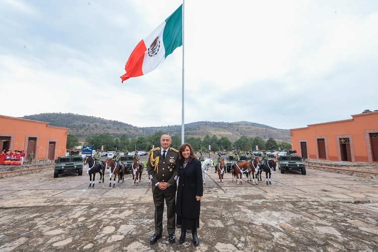 La gobernadora Lorena Cuéllar Cisneros participó en la ceremonia conmemorativa del 112 aniversario del Día del Ejército Mexicano, en las instalaciones del 5to regimiento de caballeria motorizado y escuela militar de caballeria motorizada ubicada en Mazaquiahuac en el municipio de Tlaxco, en reconocimiento a la valentía, el compromiso y la dedicación de hombres y mujeres que son parte de esta institución, creada el 19 de febrero de 1913 con el objetivo de defender la soberanía y la seguridad del país.