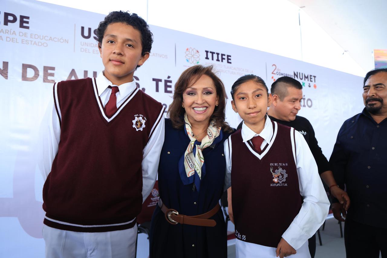 La gobernadora Lorena Cuéllar Cisneros inauguró tres aulas en la Escuela Secundaria Técnica No. 55 “IV Señorío”, de la comunidad de Acuitlapilco, con una inversión de dos millones 389 mil pesos, obras que garantizan una educación de calidad en la entidad.