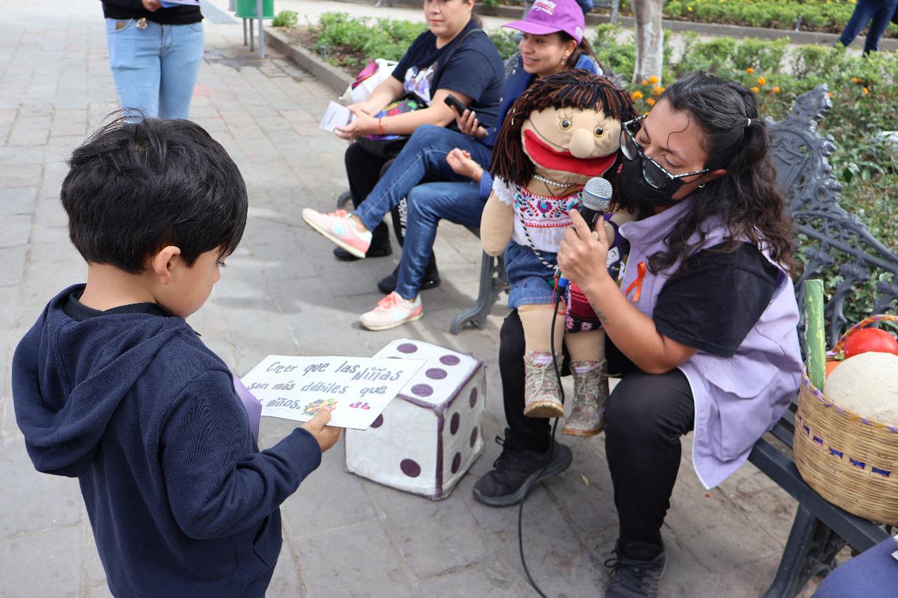 La participación de la Unidad Móvil del Programa de Apoyo a Instancias de Mujeres de las Entidades Federativas (Paimef), que proporciona orientación psicológica y de trabajo social gratuita, junto con la intervención de Belén Do Pará, una niña títere, resulta fundamental para sensibilizar a la población acerca de los distintos tipos de violencia y su prevención.