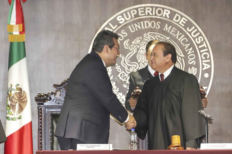 Al refrendar el compromiso de la Administración Estatal de colaborar con el Tribunal Superior de Justicia del Estado (TSJE) en condiciones de respeto e institucionalidad para responder a las exigencias de la población, el Gobernador Marco Mena resaltó que la correcta aplicación de la ley y adecuada impartición de justicia favorecen la civilidad y convivencia social.
