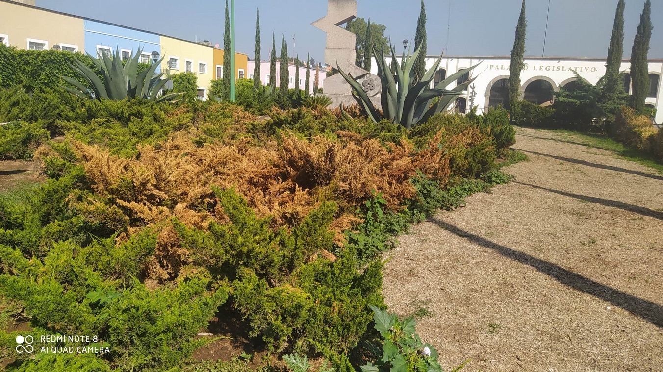 A escasas semanas de su enésima renovación, dos de los principales jardines de la ciudad de Tlaxcala: las plazas Xicohténcatl y Juárez, agonizan por la falta de agua y de una debida atención.