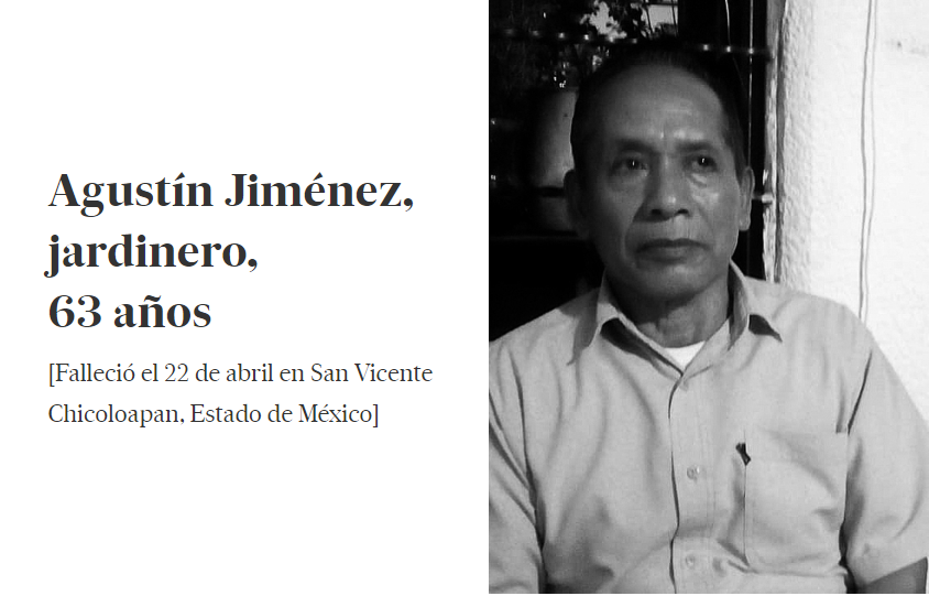 Lo único que detiene la inercia de las estadísticas y a la vez confirma su importancia es el peso individual de cada una de las muertes, la suma imposible de sus historias: la enfermera que esperaba en la calle para que la atendieran en una clínica, las canciones de los Ángeles Negros que escuchaba un jardinero por las mañanas, el monitor apagado de un periodista que aplaudía frente a la pantalla, el jefe que guardaba cajas para construirle un cochecito a su hijo, la angustia de una nieta que cree que tal vez contagió a su abuela, la receta de tinga de pollo que prefería un taxista, el editor que fue noticia desde su nacimiento, los diagnósticos precisos de un cirujano, el anhelo de un frutero por ver a su hija convertirse en maestra.