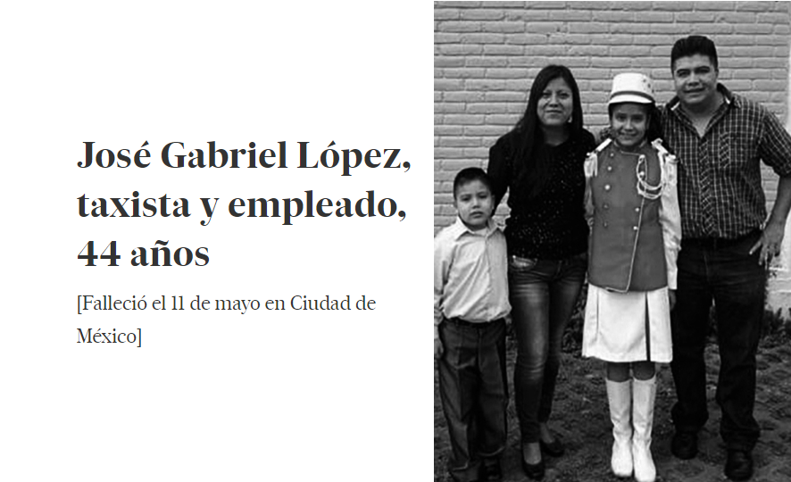 El padre y el hermano, taxistas como él, fueron a recoger las cenizas que les entregaron en el crematorio. Y ahí se acabó una vida de 44 años. Casado, dos hijos, felices en la foto, la niña ya en la preparatoria con un traje de escolta, el niño vestidito de domingo. Y su mujer. En realidad no hubo boda, solo una unión libre que duró 18 años, hasta que el coronavirus anidó en la casa de los López.