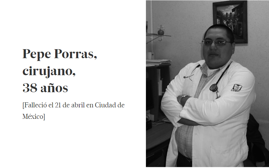 Al doctor Pepe Porras no le asustaba saberse en dos de los llamados grupos vulnerables frente al coronavirus. Pese a su diabetes y a su obesidad, cuando llegó la pandemia, al médico nacido en el barrio de Tepito, en la Ciudad de México, lo único que le preocupaba era conseguir equipos de protección para poder ponerse en la primera línea de lucha contra la enfermedad. No se imaginaba en ningún otro lugar que aquel donde estuvo en la última década: al lado de sus pacientes en el Hospital General Zona 30 del IMMS, en Iztacalco.