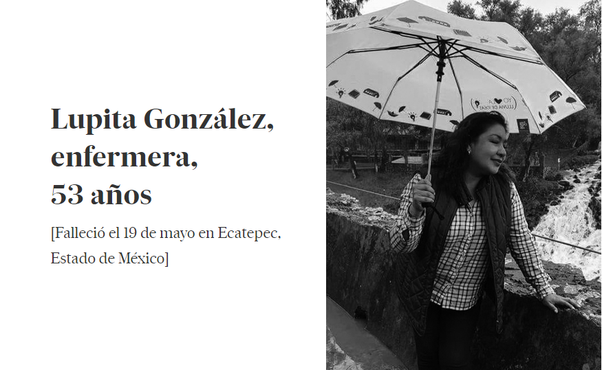 El personal médico del Hospital número 76, en Ecatepec, ayudó a María Guadalupe González —Lupita, como le decían en el Hospital General de Chalco, donde trabajó como enfermera por más de 20 años—, a dar su último adiós. “La acomodaron de tal forma que se pudiera levantar de la camilla y saludarme. Levantó la mano como pudo y me dijo adiós. Y esa fue la última vez que vi a mi hermana. Hasta que la vi en su bolsa. Cuando fui a recogerla”, cuenta entre lágrimas su hermano Brígido González, técnico radiólogo. “Aquí estoy, échale ganas”, fue lo único que atinó a decirle. “Yo pensé que sí salía”, confiesa. Guadalupe no era hipertensa, ni diabética, ni tenía cáncer.