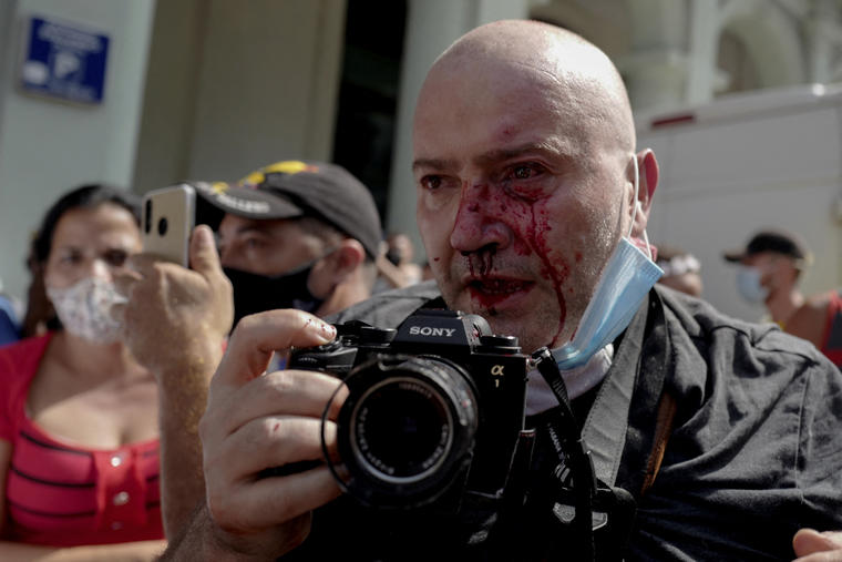 Fotorreportero de Associated Press, Ramon Espinosa, fue golpeado por policías. FOTO Adalberto Roque /AFP via Getty Images