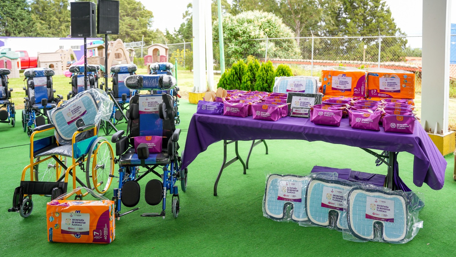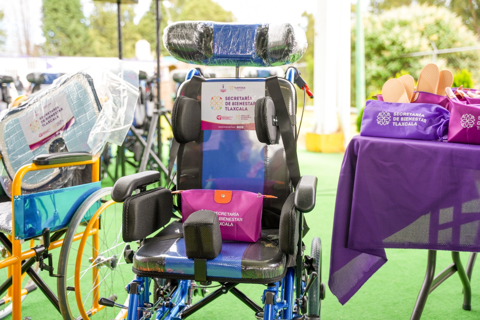 La titular de la Secretaría de Bienestar (SB), María Estela Álvarez Corona detalló que la dependencia estatal cuenta con apoyos, como sillas de ruedas estándar infantiles y cojines antiescaras para entregarlos de manera directa a infantes, jóvenes y adultos con discapacidad.
