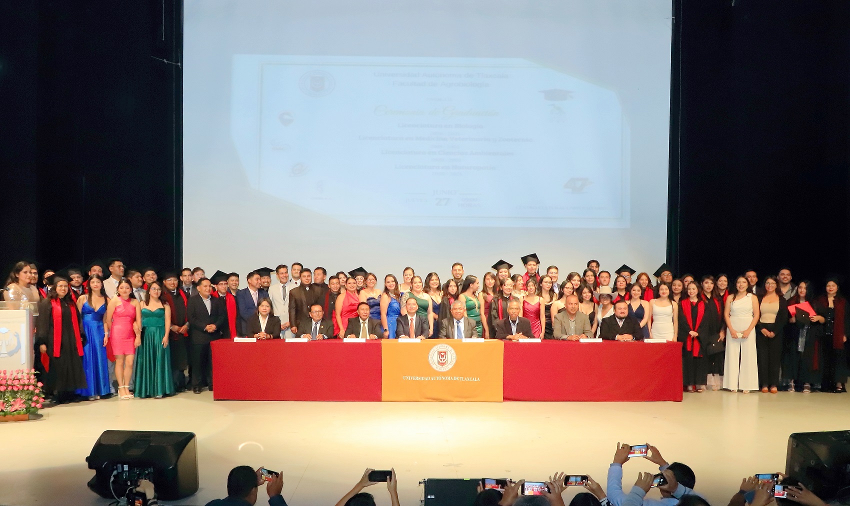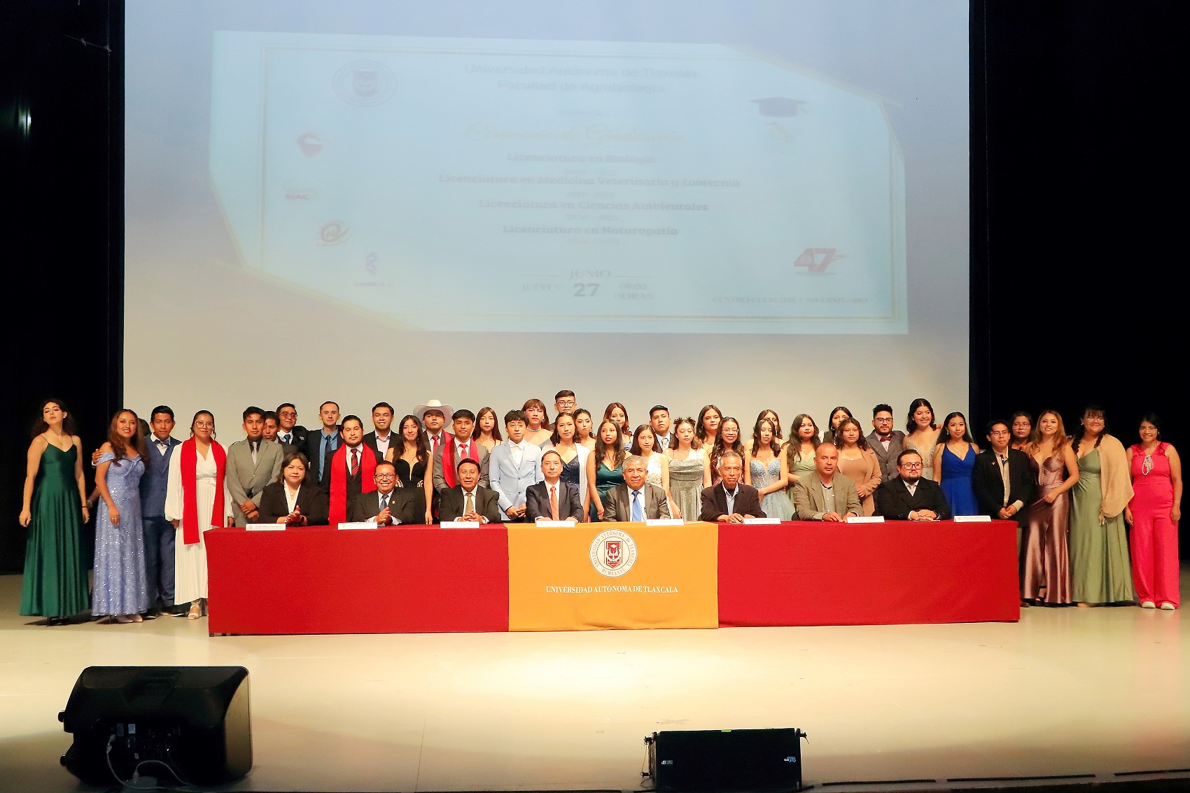La Facultad de Agrobiología de la Universidad Autónoma de Tlaxcala (UATx), llevó a cabo la ceremonia de graduación de la generación 2019-2024 de los programas educativos en Biología, Ciencias Ambientales, Naturopatía y en Medicina Veterinaria y Zootecnia, celebrada en las instalaciones del Centro Cultural Universitario (CCU).