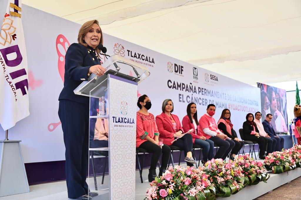 Indicó que su gobierno, a través del Sistema Estatal para el Desarrollo Integral de la Familia (Sedif) y el sector salud, atenderá este compromiso de cuidar a las mujeres, porque “lamentablemente muchas mujeres hoy no pueden platicarlo, no pueden contarlo, porque fue demasiado tarde cuando se detectó a través de una mastografía, por eso hoy en Tlaxcala vamos a hacer en este año 40 mil mastografías que serán gratuitas”.