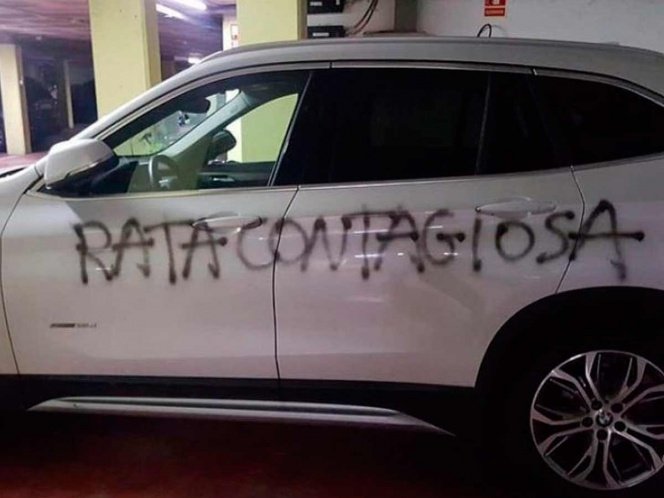 ‘Rata contagiosa’ es el mensaje que puede leerse con claridad en la fachada de su carro, al que también le poncharon dos llantas.