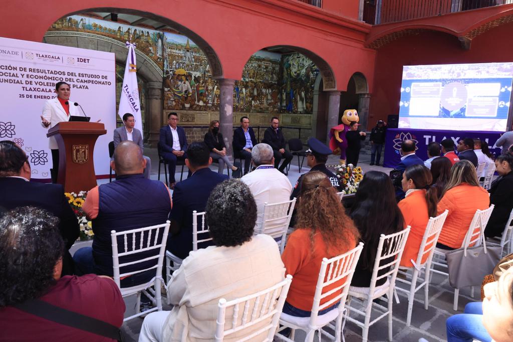 Una derrama económica de 49.5 millones de dólares y un impacto social registrado de 69 millones de espectadores alrededor del mundo, fueron los números que dejó el Campeonato Mundial de Voleibol de Playa Tlaxcala 2023, resultados que fueron arrojados por el estudio realizado por la empresa Nielsen Sports y presentado por la Comisión Nacional de Cultura Física y Deporte (Conade) en coordinación con el gobierno del estado de Tlaxcala.