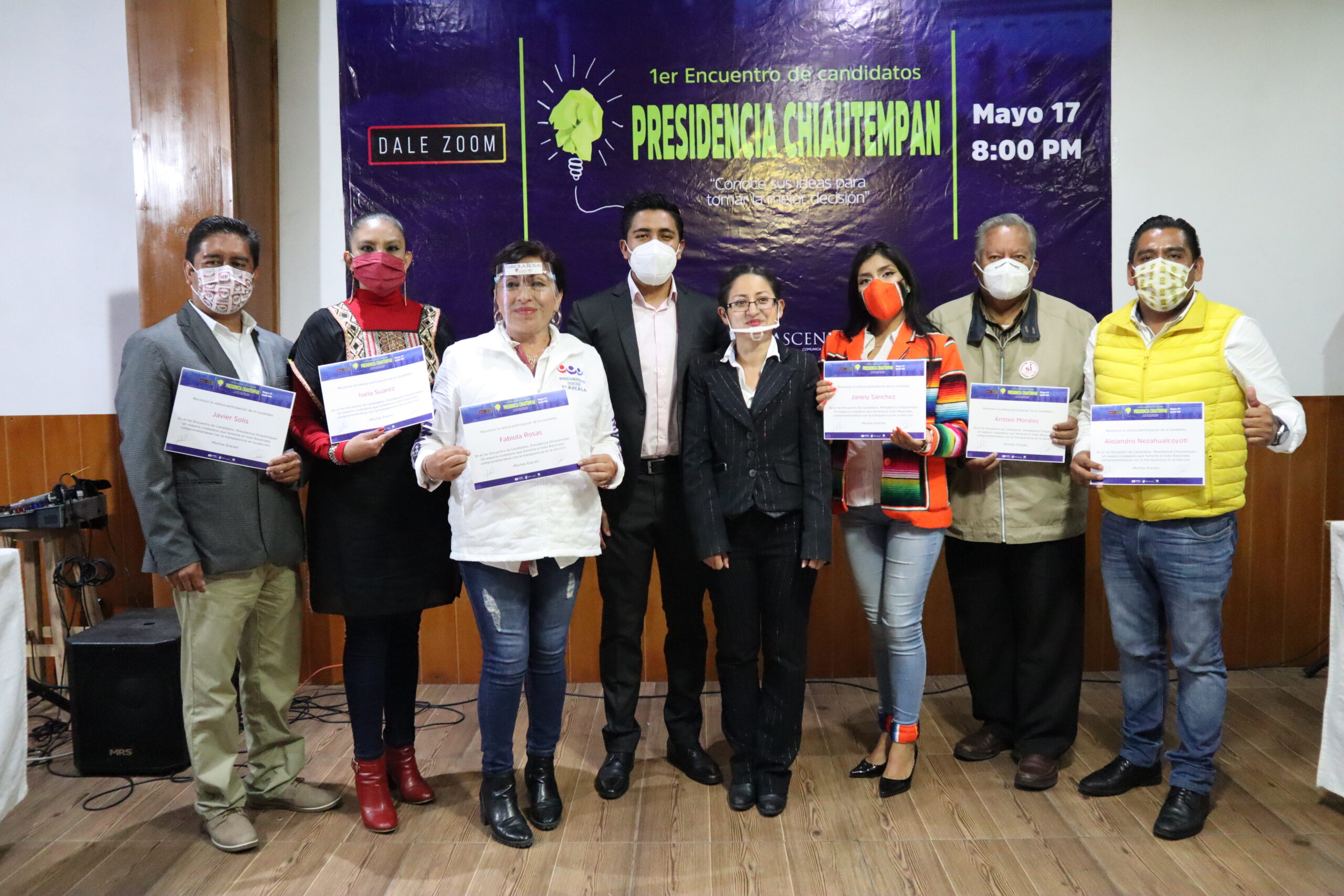 Cabe señalar, que durante el “Primer Encuentro de Candidatos a la Presidencia Municipal de Chiautempan” estuvieron presentes Fabiola Rosas Cuautle, candidata del Partido Encuentro Solidario (PES); Javier Solís Tonix, candidato del Partido Redes Sociales Progresitas (RSP); Janely Sánchez, candidata de Movimiento Ciudadano (MC); José Aristeo Morales, candidato del Partido Impacto Social Sí (PISS) y Alejandro Nezahualcóyotl Sandoval, candidato por el Partido de la Revolución Democrática (PRD). Declinando la invitación que realizó la sociedad civil, los candidatos Eloy Berruecos, del Partido del Trabajo (PT); Efraín Flores, del Partido Verde (PV); Gustavo Jiménez, del Movimiento de Regeneración Nacional (MORENA); Así como Óscar Solís, de Acción Nacional (PAN).