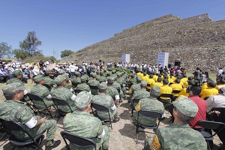En su mensaje al pie de la monumental pirámide del Xochiteco -como llaman los lugareños al centro ceremonial prehispánico-, el gobernador de Tlaxcala hizo un reconocimiento especial a los brigadistas que este año, según la Conafor, sembrarán por todo el estado alrededor de 5.7 millones de árboles.