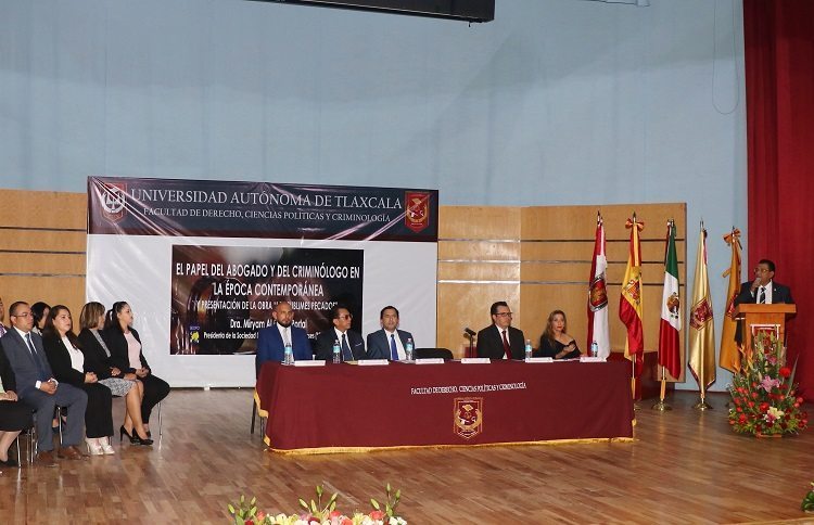 Para arrancar con las actividades de la Facultad de Derecho, Ciencias Políticas y Criminología de la Universidad Autónoma de Tlaxcala (UAT), ante catedráticos y estudiantes de nuevo ingreso de sus Programas Educativos, se efectuó la conferencia magistral: «El papel del abogado y del criminólogo en la época contemporánea», a cargo de la Dra. Miryam Al Fawal Portal, Presidenta de la Sociedad Europea de Ciencias Forenses (SECIFO), así como la presentación de su última obra intitulada: «Los sublimes pecados», en las instalaciones del Teatro Universitario
