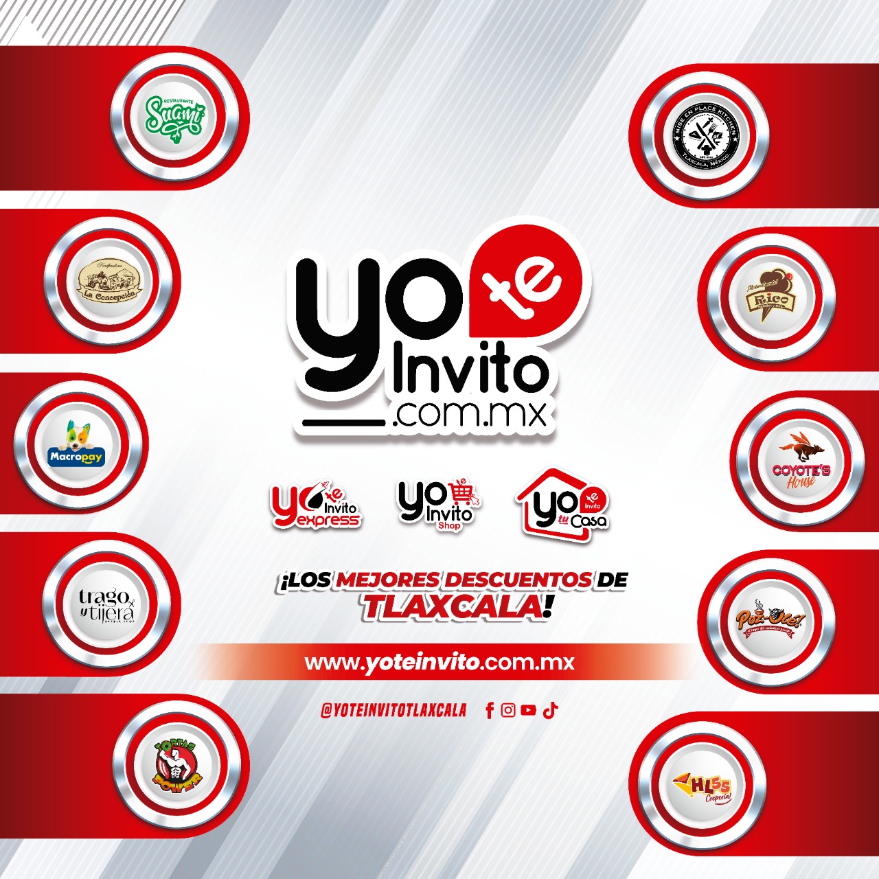 Como usuario puedes disfrutar de todos estos increíbles descuentos con la membresía de Yo Te Invito presentándola en los establecimientos o con el repartidor #Express, al momento tenemos más de 200 promociones exclusivas como 3×2 en especialidades en Taquería Los Magueyes, 3×2 en pan en La Concepción Ocotlán, 2×1 en desayunos en Las Costillitas de mi Pueblo, 2×1 en desayunos en Suami, 25% en Pizzas Tonys, 10% en Poz-olé, productos gratis, precios especial y muchos negocios tlaxcaltecas, cada día se publican nuevas promociones en la plataforma digital www.yoteinvito.com.mx