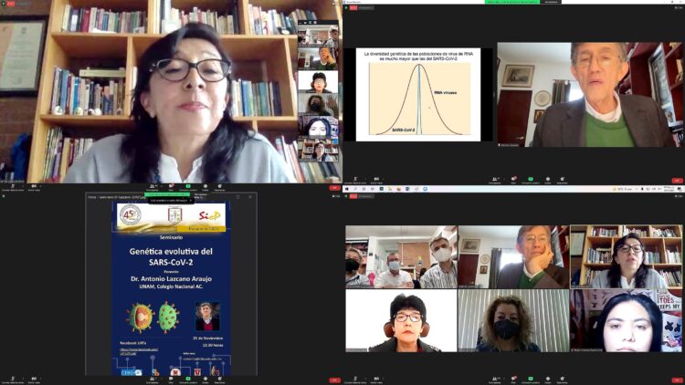 Para continuar con el fortalecimiento académico entre Instituciones de Educación Superior (IES), y el análisis de temáticas vigentes en nuestra realidad actual, la Universidad Autónoma de Tlaxcala (UATx), a través del Centro Tlaxcala Biología de la Conducta (CTBC), coordinado por la Dra. Margarita Martínez Gómez, realizó el seminario denominado: «Genética evolutiva del SARS-CoV-2», el cual fue desarrollado por el Dr. Antonio Lazcano Araujo, reconocido investigador de la Universidad Nacional Autónoma de México (UNAM) y de El Colegio Nacional.