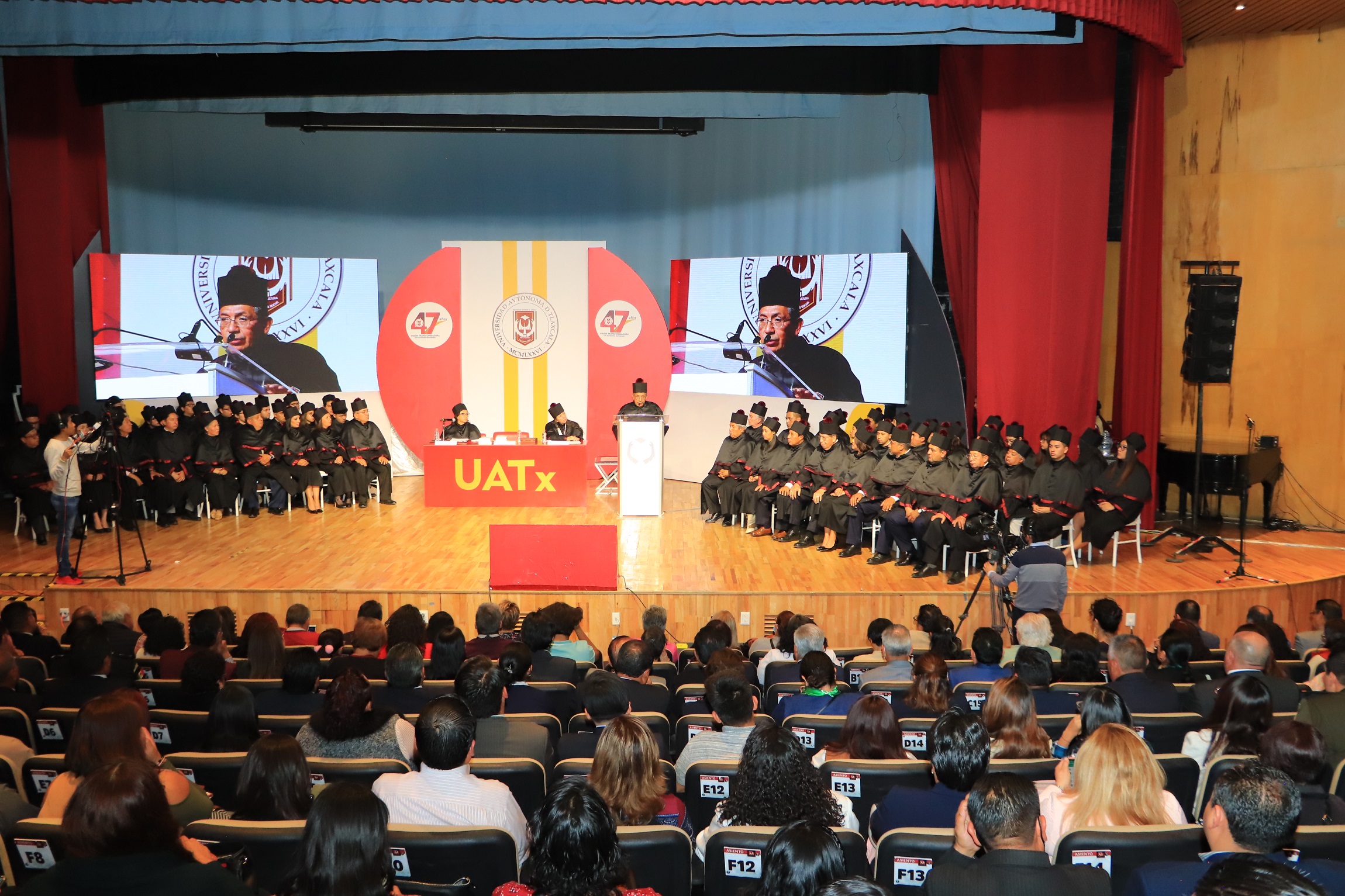 Este acto contó con la presencia de la Maestra Rosa Elena Salas Hernández, en representación de la profesora Leticia Ramírez Amaya, Secretaria de Educación Pública federal; de la Maestra Ana Lilia Rivera Rivera, Presidenta del Senado de la República; del Maestro Omar Cuatianquiz Ávila, en representación de la Licenciada Lorena Cuéllar Cisneros, Gobernadora de Tlaxcala; así como de titulares y representantes de instituciones educativas; de órganos de los tres niveles gobierno, organismos autónomos, exrectores de la UATx e invitados especiales.