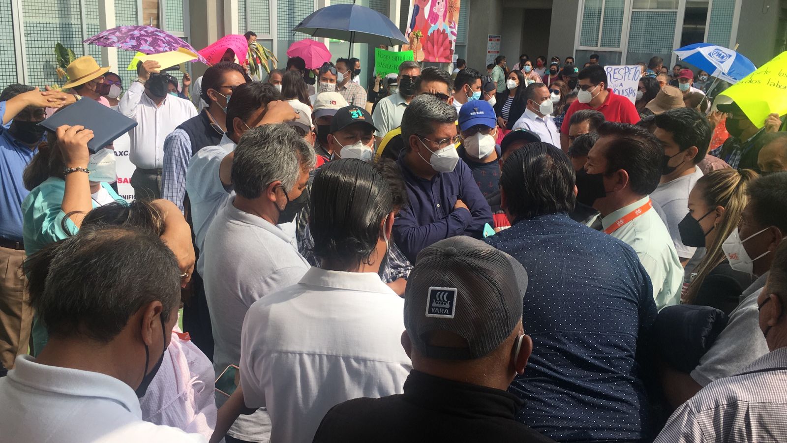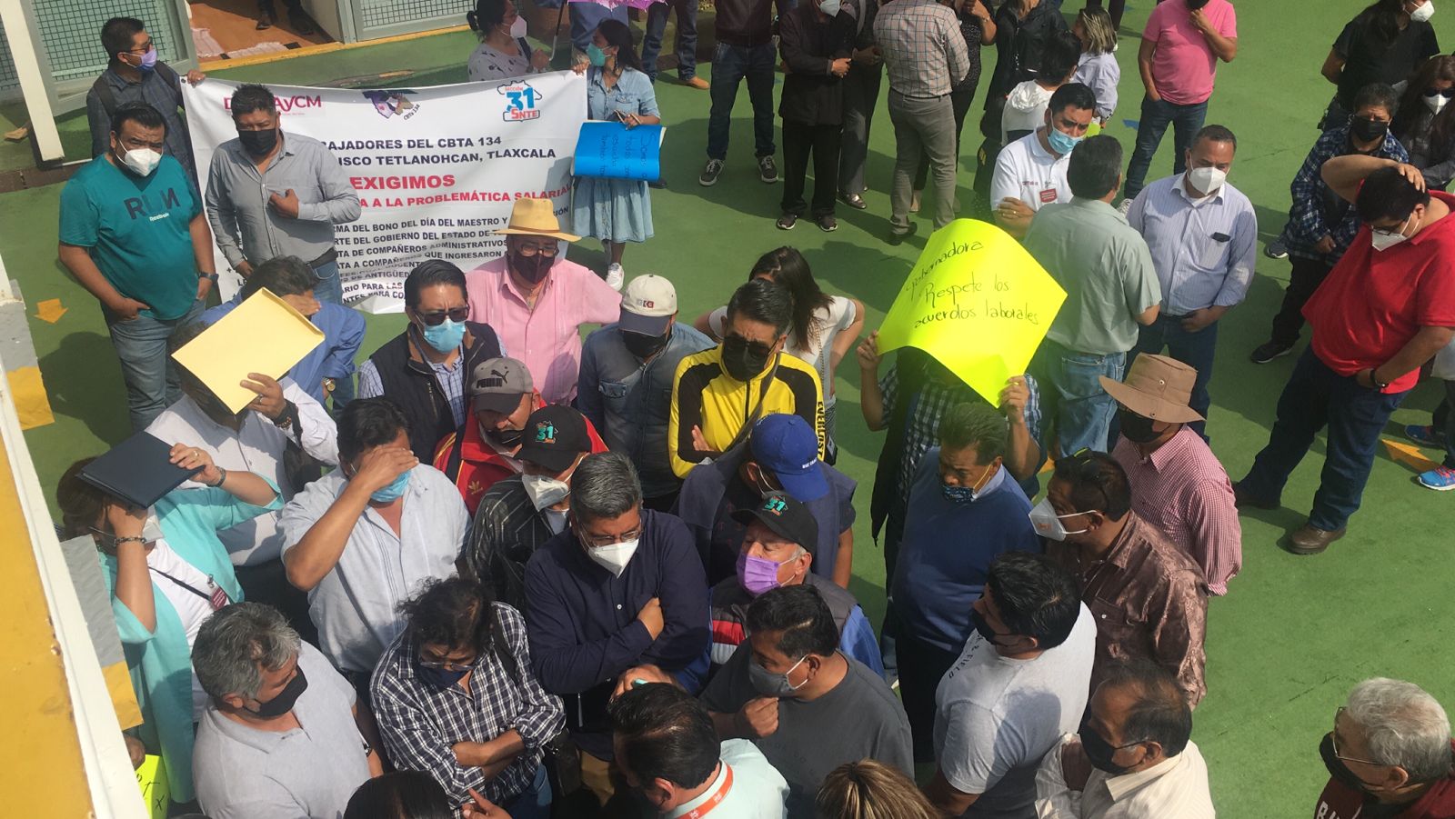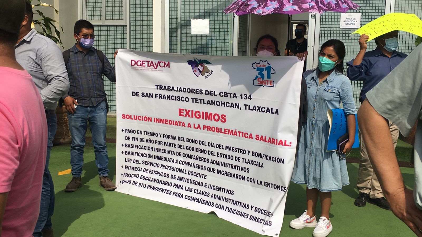 Este día, profesores provenientes de los Centros de Bachillerato Tecnológico Industrial y de Servicios (CBtis) y de los Centros de Bachillerato Tecnológico Agropecuario (CBTAS) en el estado de Tlaxcala, se manifestaron frente a Palacio de Gobierno para solicitar a la gobernadora Lorena Cuéllar su intervención para agilizar los pagos atrasados que hoy les acontecen.