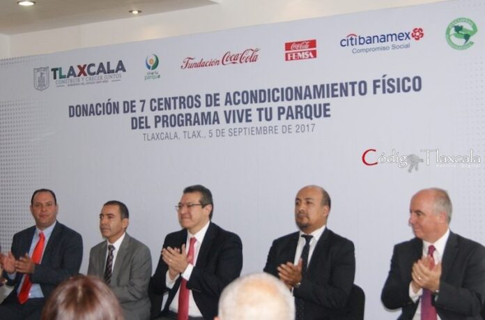 En rueda de prensa convocada esta mañana en instalaciones de la Secretaria de Desarrollo Económico (SEDECO), de la ciudad de Tlaxcala, en presencia del gobernador Marco Antonio Mena Rodríguez; el representante de FEMSA, Marco Antonio Morales Ache, anunció la próxima donación de siete parques en el estado de Tlaxcala.