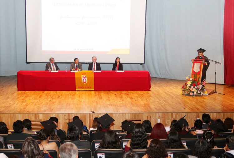 La Facultad de Ciencias de la Salud perteneciente a la Universidad Autónoma de Tlaxcala (UATx), efectuó la ceremonia de graduación de 80 estudiantes de la Licenciatura en Química Clínica, generación 2019-2024, realizada en el Teatro Universitario.
