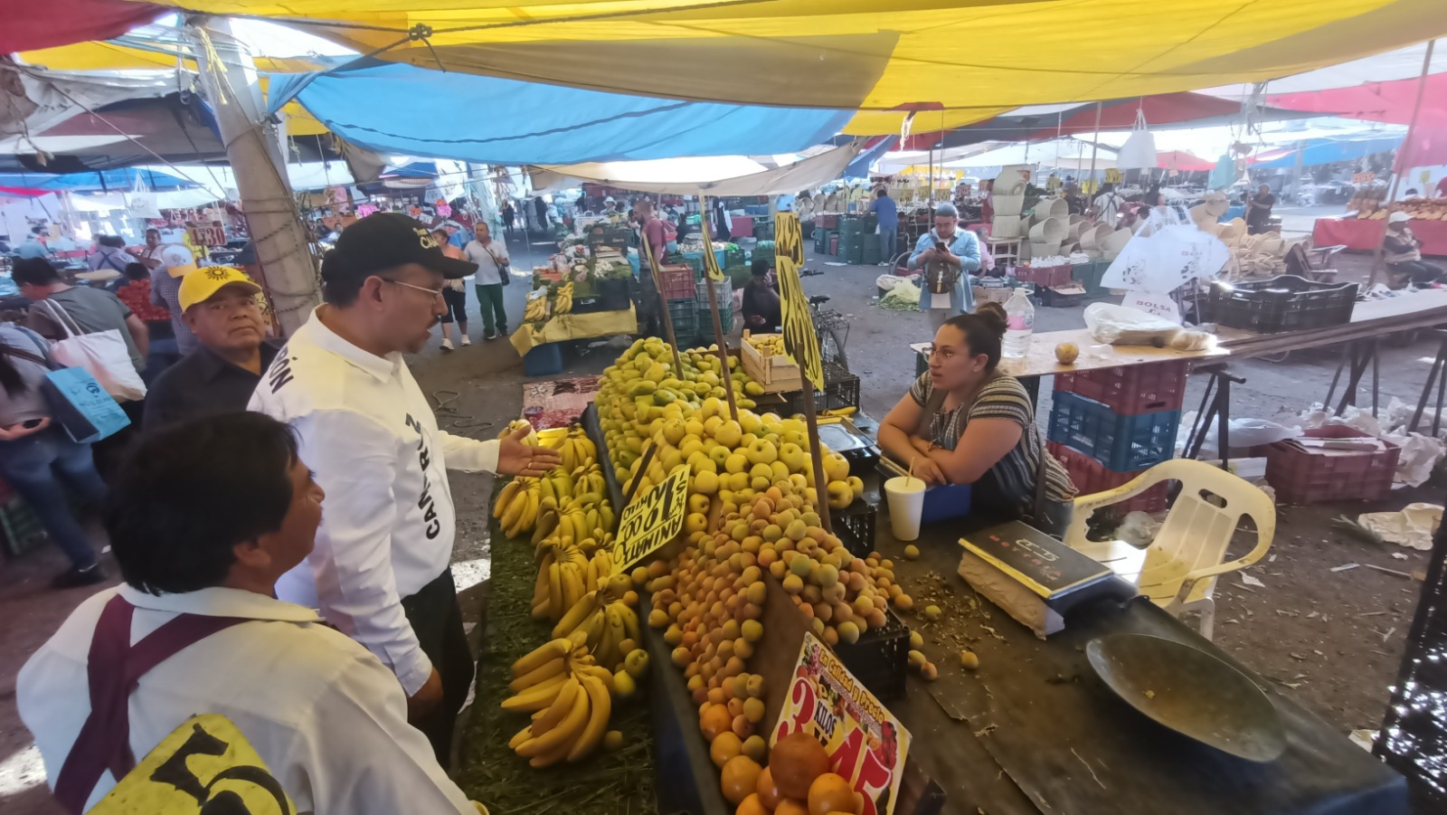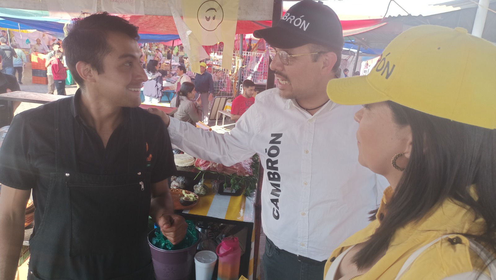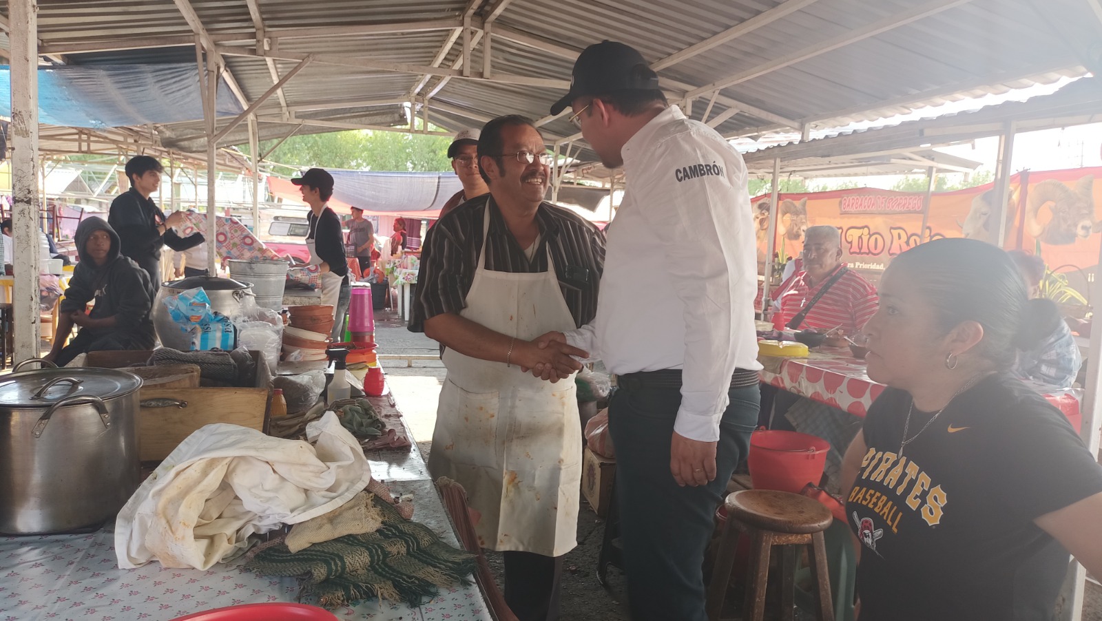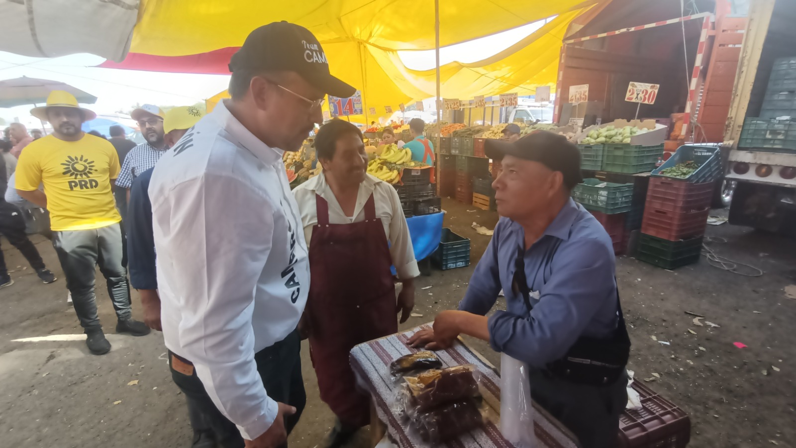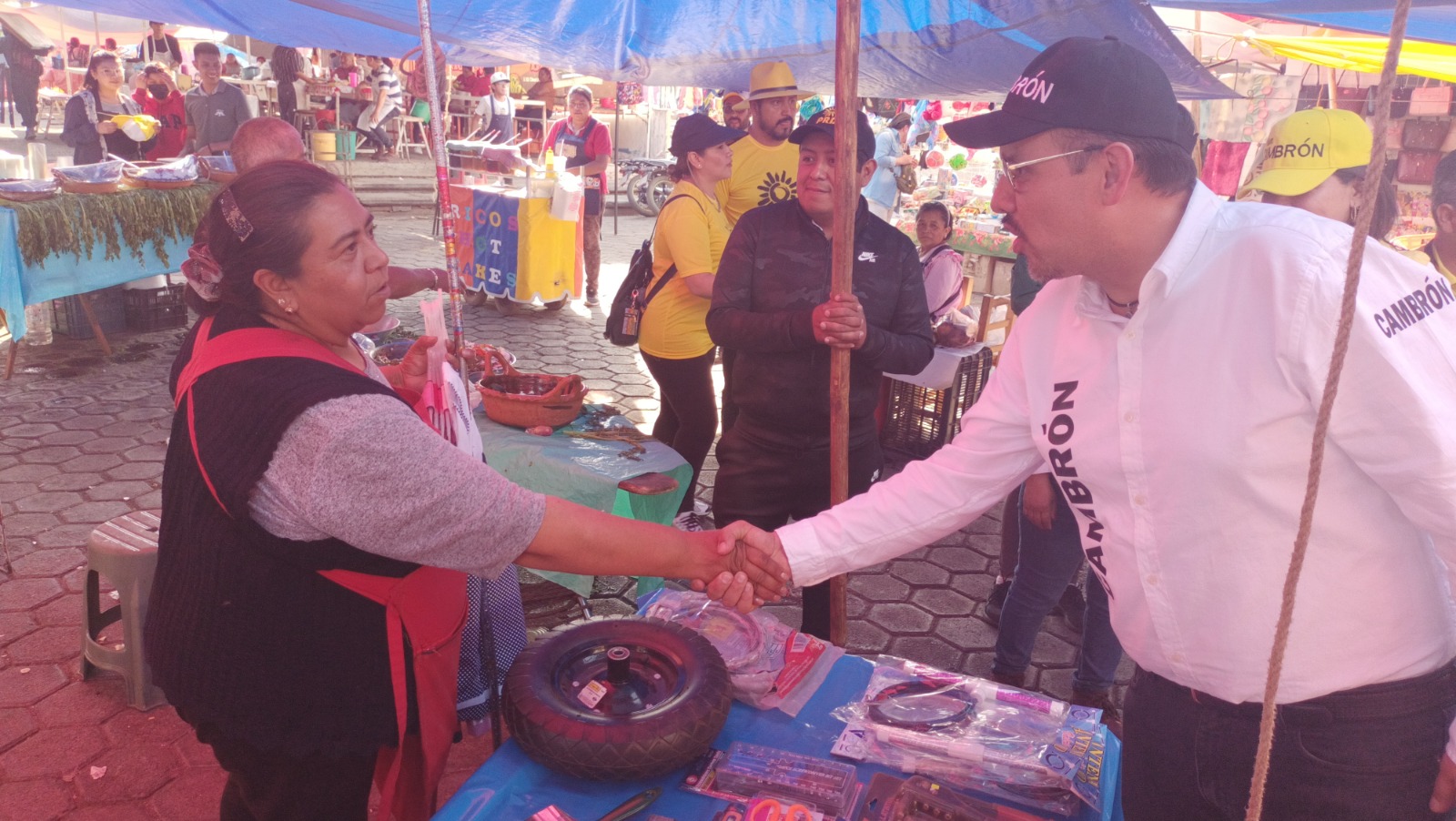 Cambrón tuvo una apretada agenda de domingo con una extensa caminata en el mercado nuevo, y reuniones en los municipios de Tepeyanco, Xiloxoxtla, San Pablo Del Monte y Mazatecochco.