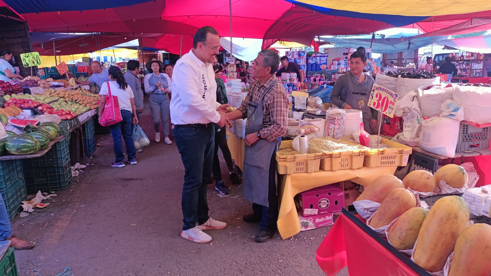 El candidato Cambrón Soria realizó caminata por el mercado nuevo y varios municipios