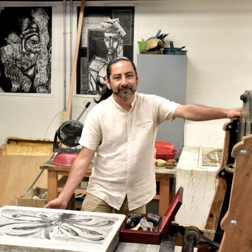 «La forma de enseñar, producir, exponer y hasta de crear ha cambiado con el tema del confinamiento por la COVID-19», señala en entrevista el artista tlaxcalteca Enrique Pérez Martínez, coordinador, desde hace 20 años, del Taller de Estampa Básica y Avanzada Camaxtli (TEBAC), en Tlaxcala.