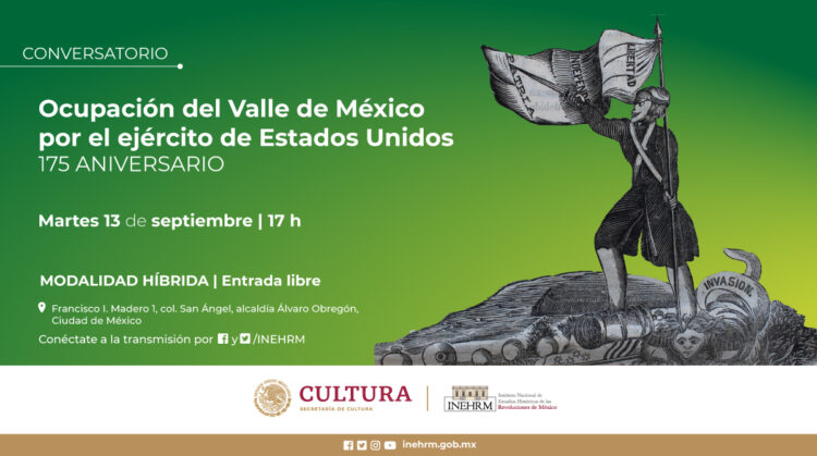Al día siguiente, se llevará a cabo en formato presencial el foro “Ocupación del valle de México por el ejército de Estados Unidos, 175 aniversario”, en las instalaciones del Inehrm, que se encuentra en Francisco I. Madero 1, San Ángel, CDMX, quienes prefieran, podrán seguirlo en línea a través de la redes institucional del Inehrm, en Facebook (inehrm.fanpage) y el YouTube (Canal Inehrm) , el martes 13 de septiembre a las 17:00 horas.