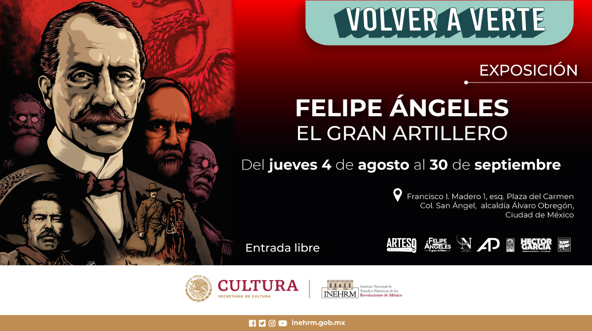 La segunda muestra con el nombre de “Felipe Ángeles. El gran artillero” se expone en el patio central de la sede del Inehrm, en San Ángel, CDMX, de lunes a viernes, de 9:00 a 18:00 horas, hasta el 30 de septiembre próximo; entrada gratuita.