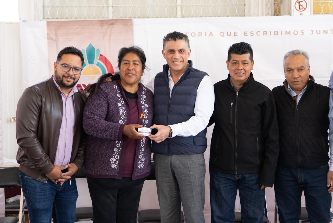 También se distribuyeron tarjetas para despensas y boletos para el comedor comunitario que abrirá próximamente en Tizatlán.