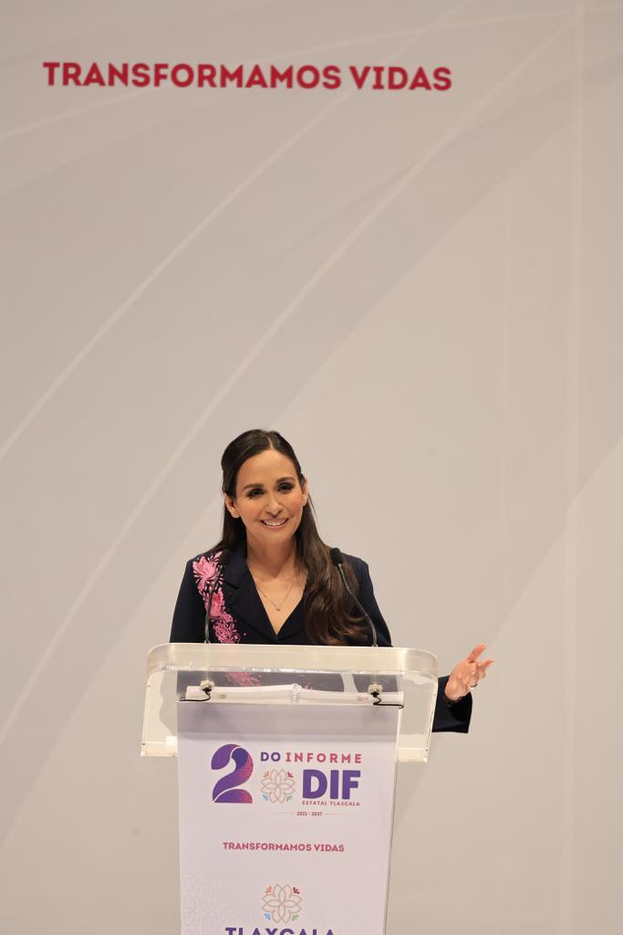 La presidenta honorífica del Sistema Estatal para el Desarrollo Integral de la Familia (Sedif), Mariana Espinosa de los Monteros Cuéllar presentó su Segundo Informe de Actividades, en el que destacó el compromiso social durante el 2023 y renovó el pacto que hizo desde el inicio con las familias tlaxcaltecas y los sectores más vulnerables de la entidad.