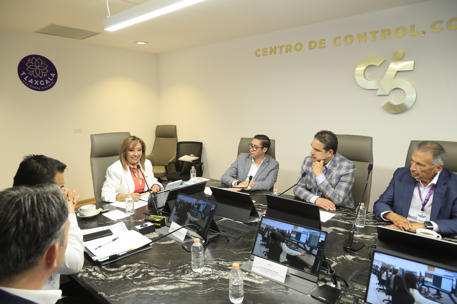 La titular del Ejecutivo local, Lorena Cuéllar Cisneros sostuvo una reunión con integrantes del Consejo Coordinador Empresarial (CCE) de Puebla, con la finalidad de dar a conocer los beneficios en materia de seguridad que tiene la instalación del Centro de Control, Comando, Comunicaciones, Cómputo, Coordinación e Inteligencia (C5i) en Tlaxcala.