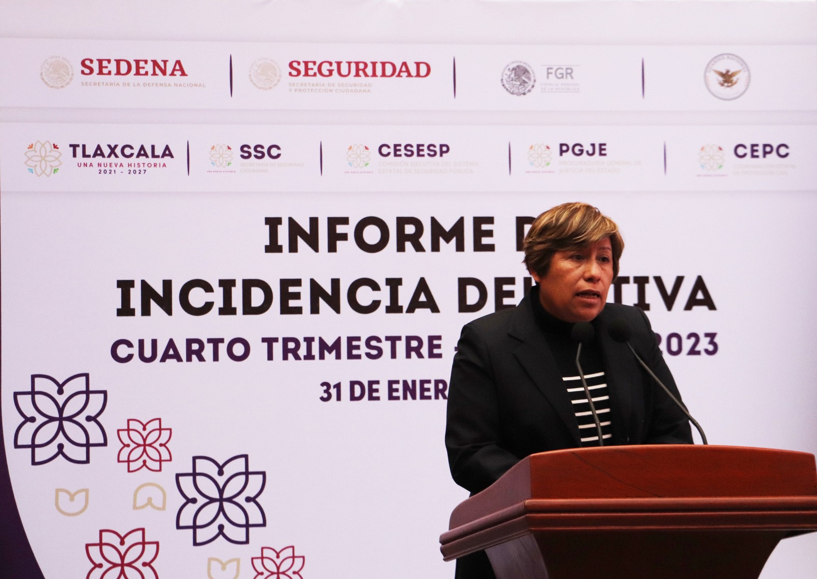 Acompañada de la gobernadora Lorena Cuéllar, Carro Roldán destacó que de enero a diciembre de 2023 se lograron 10 sentencias condenatorias por el delito de homicidio doloso, en comparación con el año 2020 en el que no se registraron sentencias, además de señalar que en los últimos seis años el ilícito de homicidio doloso presentó la menor incidencia.