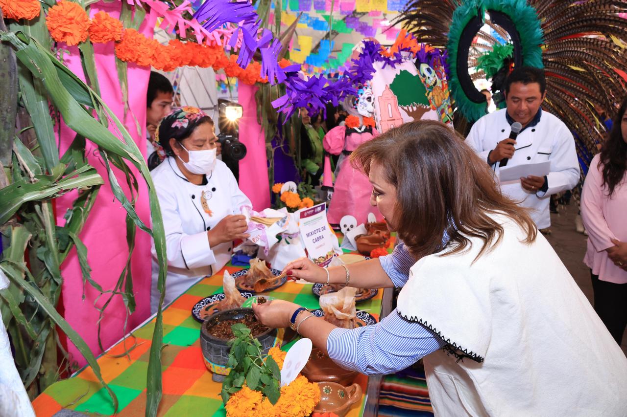También la gobernadora Lorena Cuéllar Cisneros se sumó a esta fiesta de sabores; celebró los olores y sabores de los expositores y dijo que estas recetas estarán compiladas en un libro porque “fue un gran trabajo de todas y todos”.