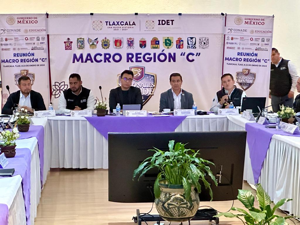 Tlaxcala realizó con éxito la primera reunión de la Macro Región C rumbo a Nacionales CONADE 2024, en donde el gobierno del estado, en voz del encargado de despacho del Instituto del Deporte de Tlaxcala, Daniel Moncayo Cervantes, enfatizó las grandezas de la entidad para albergar eventos deportivos a nivel nacional.