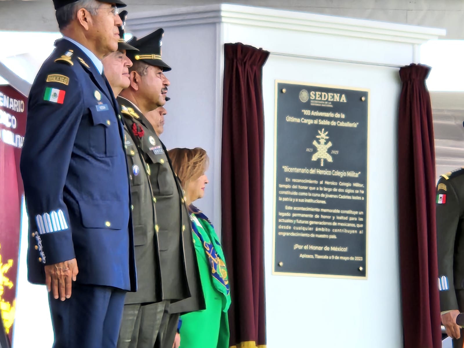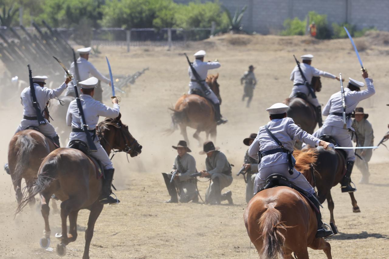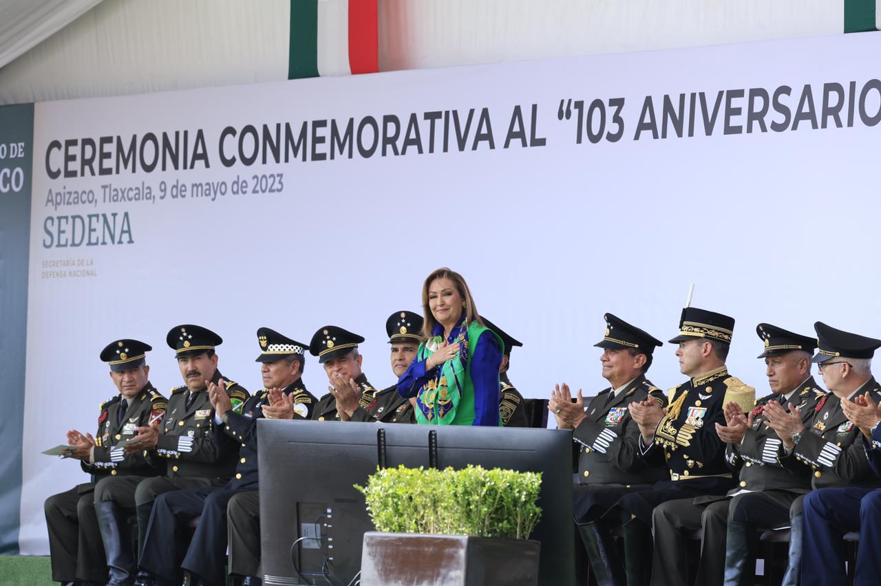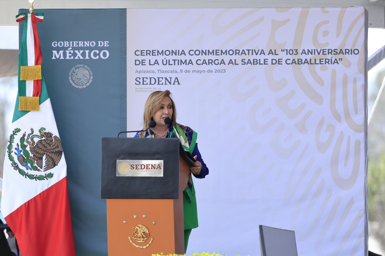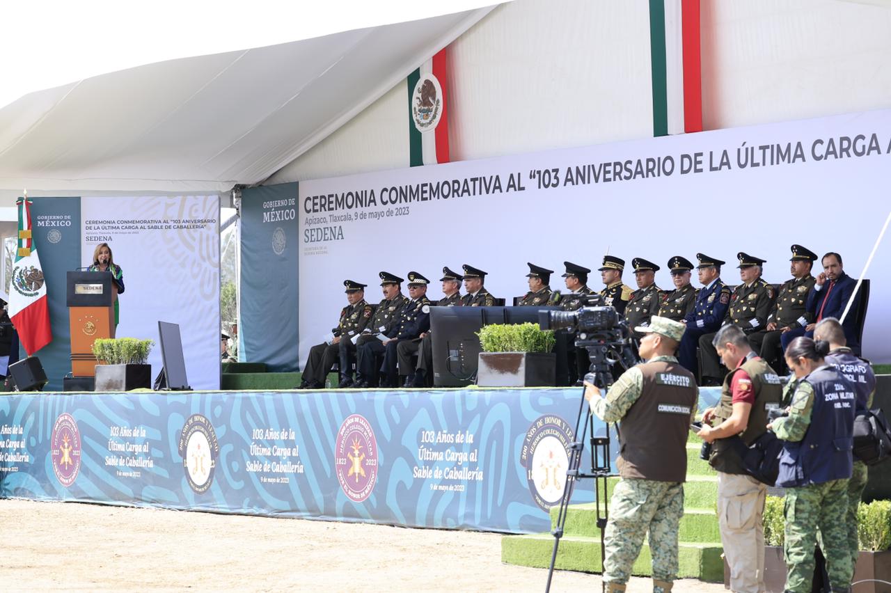 La gobernadora Lorena Cuéllar Cisneros y el titular de la Secretaría de la Defensa Nacional (Sedena), Salvador Crescencio Sandoval González encabezaron la ceremonia del 103 aniversario de la Última Carga al Sable de Caballería en el municipio de Apizaco.
