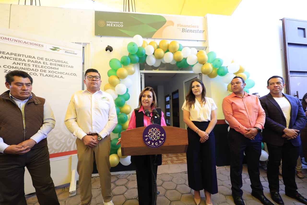 Con la finalidad de ampliar los productos financieros y de telecomunicaciones en beneficio de los sectores vulnerables, la gobernadora Lorena Cuéllar Cisneros encabezó la reapertura de la sucursal “Financiera para el Bienestar” (FinaBien), antes Telecomunicaciones de México (Telecomm), en el barrio de Xochicalco del municipio de Zacatelco.