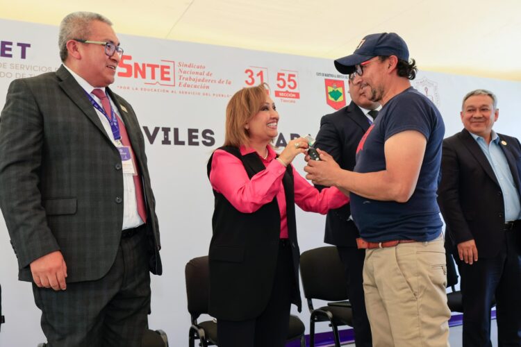 La titular del Ejecutivo local, Lorena Cuéllar Cisneros, acompañada del secretario de Educación, Homero Meneses Hernández, entregó 36 vehículos a igual número de trabajadores que resultaron ganadores en los sorteos del Día del Maestro, Día de la Educadora, Día del Personal de Asistencia y Apoyo a la Educación y Día del Jubilado.