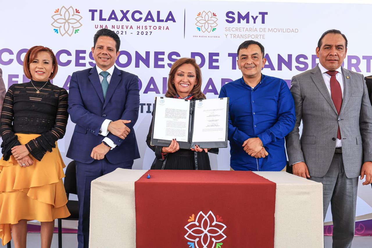La gobernadora Lorena Cuéllar Cisneros, a través de la Secretaría de Movilidad y Transporte (SMyT), entregó 16 concesiones y firmó la Declaratoria de necesidad pública del servicio de transporte en la modalidad de colectivo con itinerario fijo en el tramo carretero Apizaco–Tlaxcala.