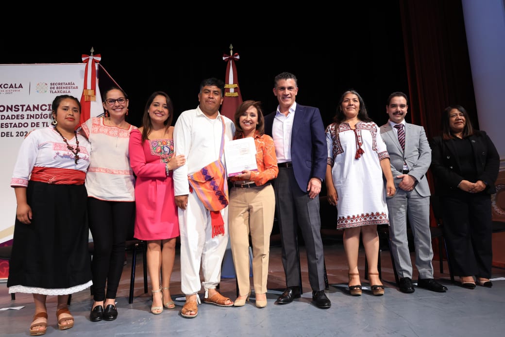 La gobernadora Lorena Cuéllar Cisneros, entregó 57 constancias a autoridades de pueblos indígenas que se encuentran registrados en el “Catálogo de Pueblos y Comunidades Indígenas y Afromexicanas”, acompañada de la titular de la oficina de representación del Instituto Nacional de Pueblos y Comunidades Indígenas (INPI), representación Puebla-Tlaxcala, María del Carmen Álvarez Juárez y de la presidenta del Comité Consultivo de Bienestar estatal, Fernanda Espinosa de los Monteros Cuéllar.