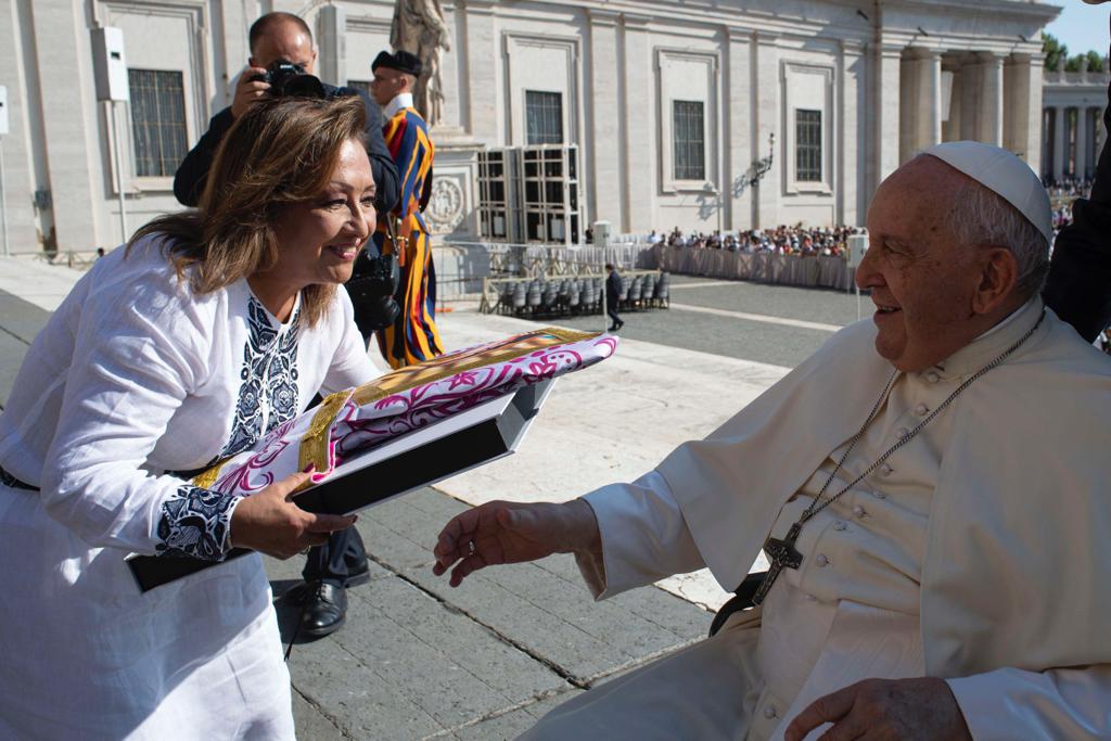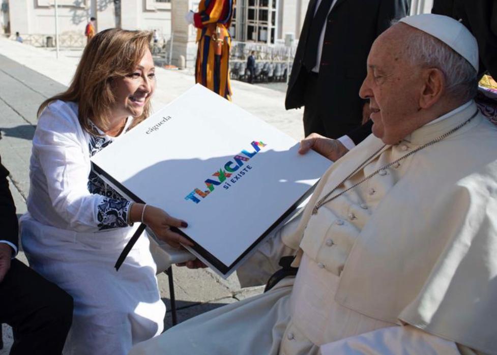 Entrega Gobernadora Lorena Cuéllar el Libro “Tlaxcala Sí Existe” al Papa Francisco