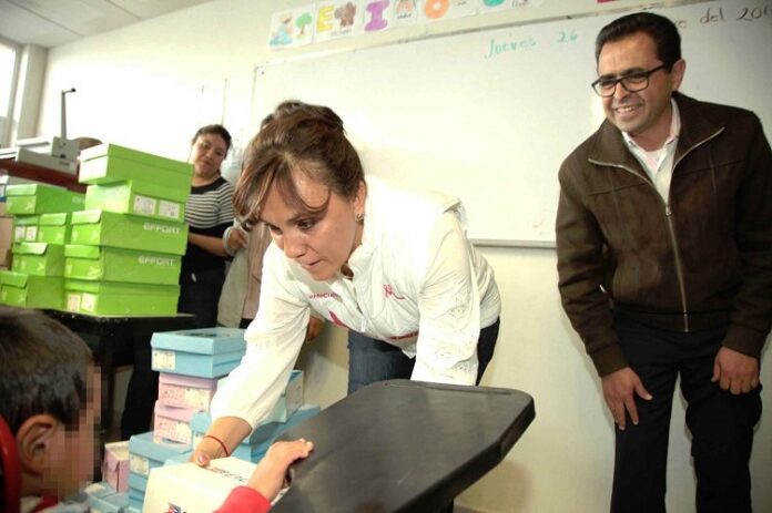 En su mensaje, la Presidenta Honorífica del DIF Estatal destacó que con la entrega de calzado se contribuye a que los infantes tengan un mejor desarrollo en sus actividades escolares.