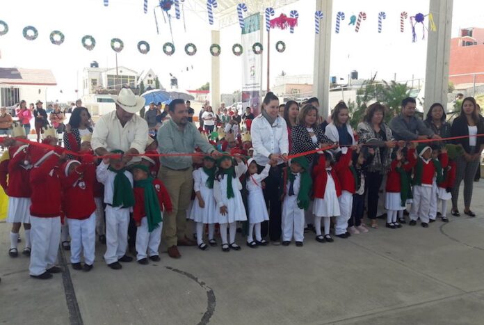 Para esta ocasión, la delegada Mariana González acompañada del presidente Municipal Mauro León Garfias y del presidente del Club de Migrantes Ángel Carmona, Inauguran la techumbre del preescolar Felipe Santiago Xicoténcatl de la Comunidad de San Simeón Xipetzingo, Municipio de Hueyotlipan.