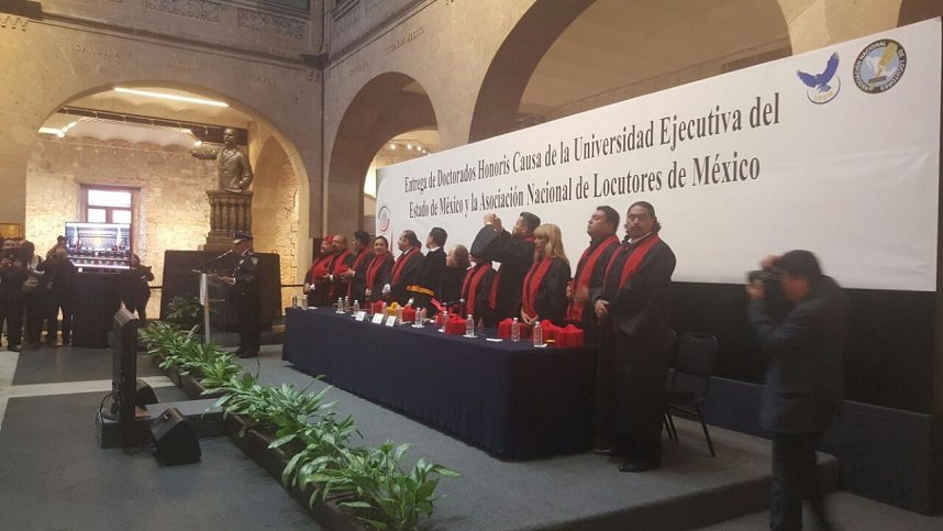 La senadora tlaxcalteca Lorena Cuéllar Cisneros y la diputada local nativa de Acuamanala Floria María Hernández, recibieron sendos doctorados “Honoris Causa” de la Universidad Ejecutiva del Estado de México a propuesta de la Asociación Nacional de Locutores de México.