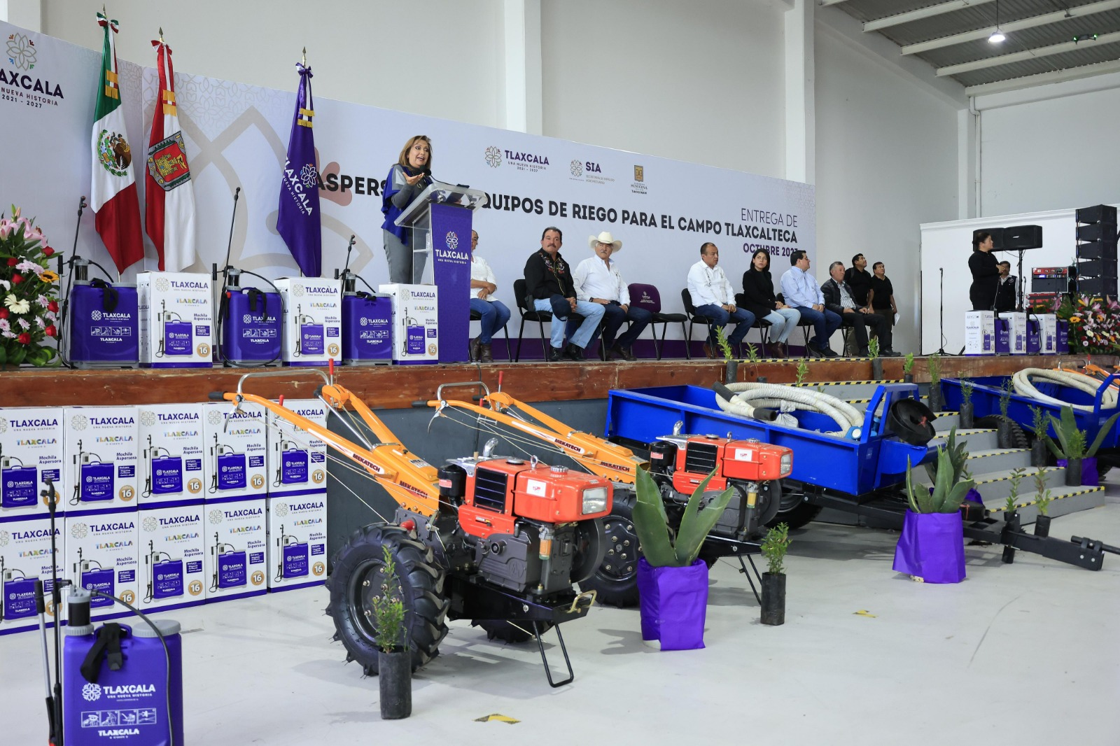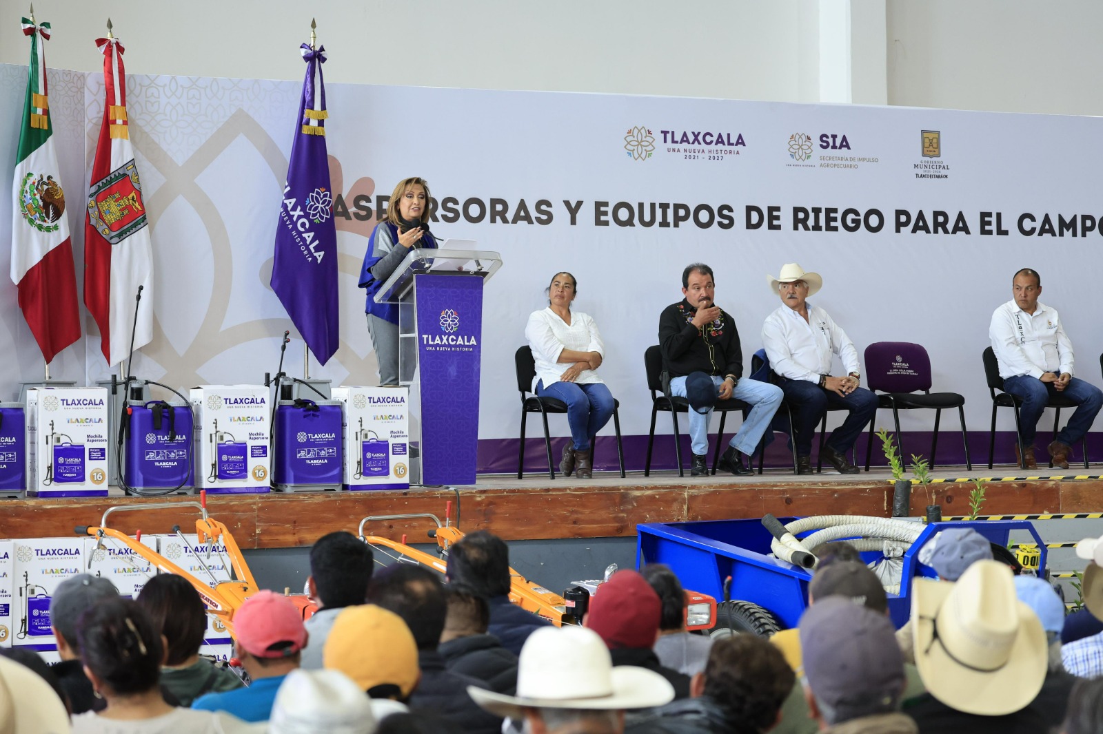 En tanto, a nombre de los productores beneficiados, la comisaria ejidal de Tlaxco, Eréndira González García agradeció la entrega masiva de equipos que les permitirá obtener mejores resultados en el campo.