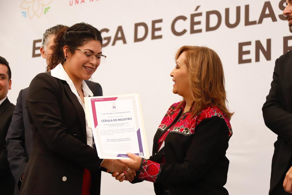 La gobernadora Lorena Cuéllar Cisneros entregó cédulas y credenciales a los representantes de 20 sindicatos y organizaciones que integran el padrón de transportistas relacionados con la ejecución de obras, con el objetivo de garantizar su participación igualitaria y con apego a la ley en proyectos de infraestructura estatal.