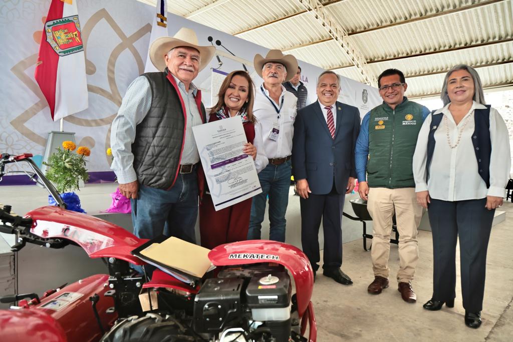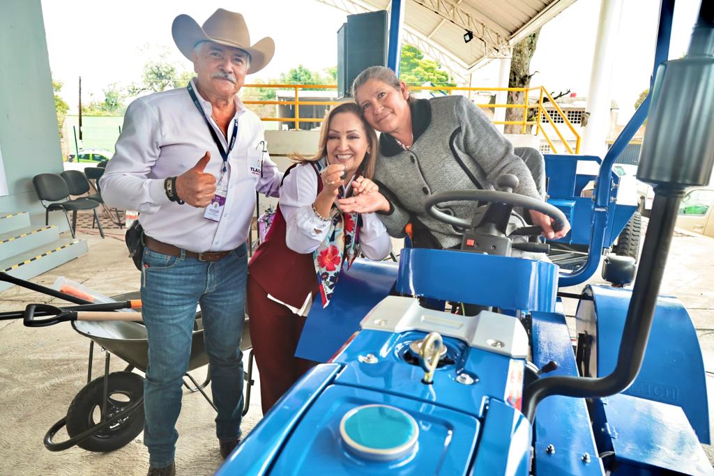La gobernadora Lorena Cuéllar Cisneros entregó maquinaria agrícola gratuita a 31 personas beneficiarias del Programa Fomento e Innovación Productiva, durante la Feria de la Agricultura Familiar y la Seguridad Alimentaria realizada en la Plaza del Huehue del municipio de Yauhquemehcan.