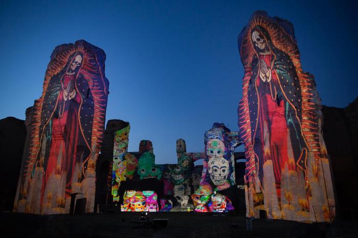 En la versión de la “Carmen” de Valentina Carrasco hay un muro como el que busca construir Trump y esculturas de los héroes patrios de Estados Unidos, junto a sombreros charros, rebozos, muchas calaveras, la Catrina y su catrín, la Santa Muerte (ya sin rayos ni flores al pie), y claro, la tragedia universal del amor entre seres marginados.