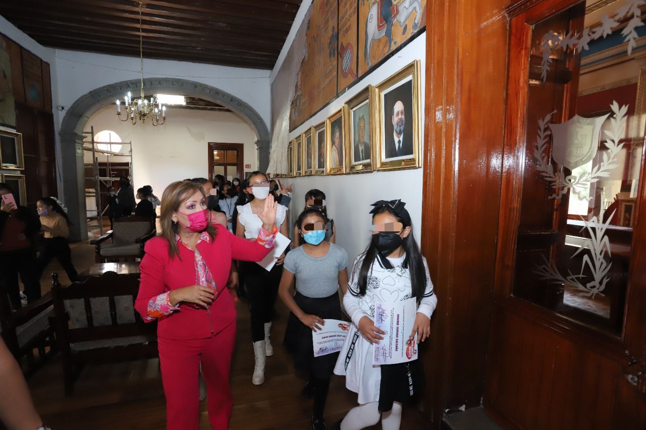 En la explanada de Palacio de Gobierno la mandataria local, destacó la importancia de conocer las solicitudes de los parlamentarios infantiles, así como de saber sus necesidades.