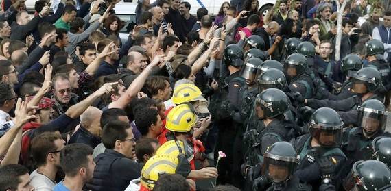 Hasta el momento se sabe de cientos de independentistas heridos en Barcelona, Tarragona, el Ebro, Gerona y Lleida, a resultas de arremetidas de la Guardia Civil contra centros de votación, dos graves (alcanzado un hombre por balas de goma -ilegales en Cataluña- de la Guardia Civil; otro infartado durante una carga). Hay algunos policías nacionales apedreados y el cuerpo Mossos d’Esquadra, la policía regional, está siendo juzgado por jueces por negarse a acatar la orden dictada por el máximo Tribunal de impedir la votación .